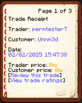 ### Item lores within a receipt can be viewed by <mark style="color:yellow;">hovering</mark> over the respective item names